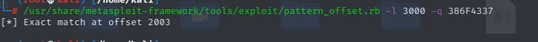 /usr/share/metasploit-framework/tools/exploit/pattern_offset.rb -l 3000 -q 386F4337 ##-l 字符长度 -q 寻找