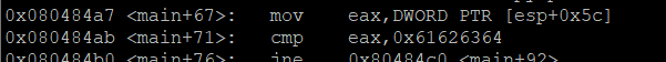0x080484ab <main+71>: cmp eax,0x61626364
