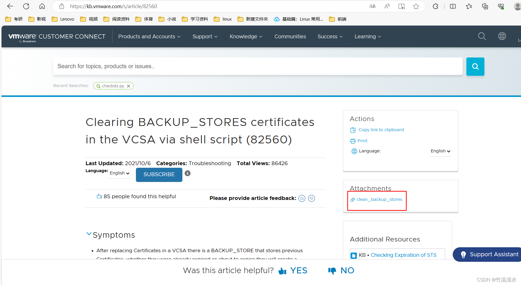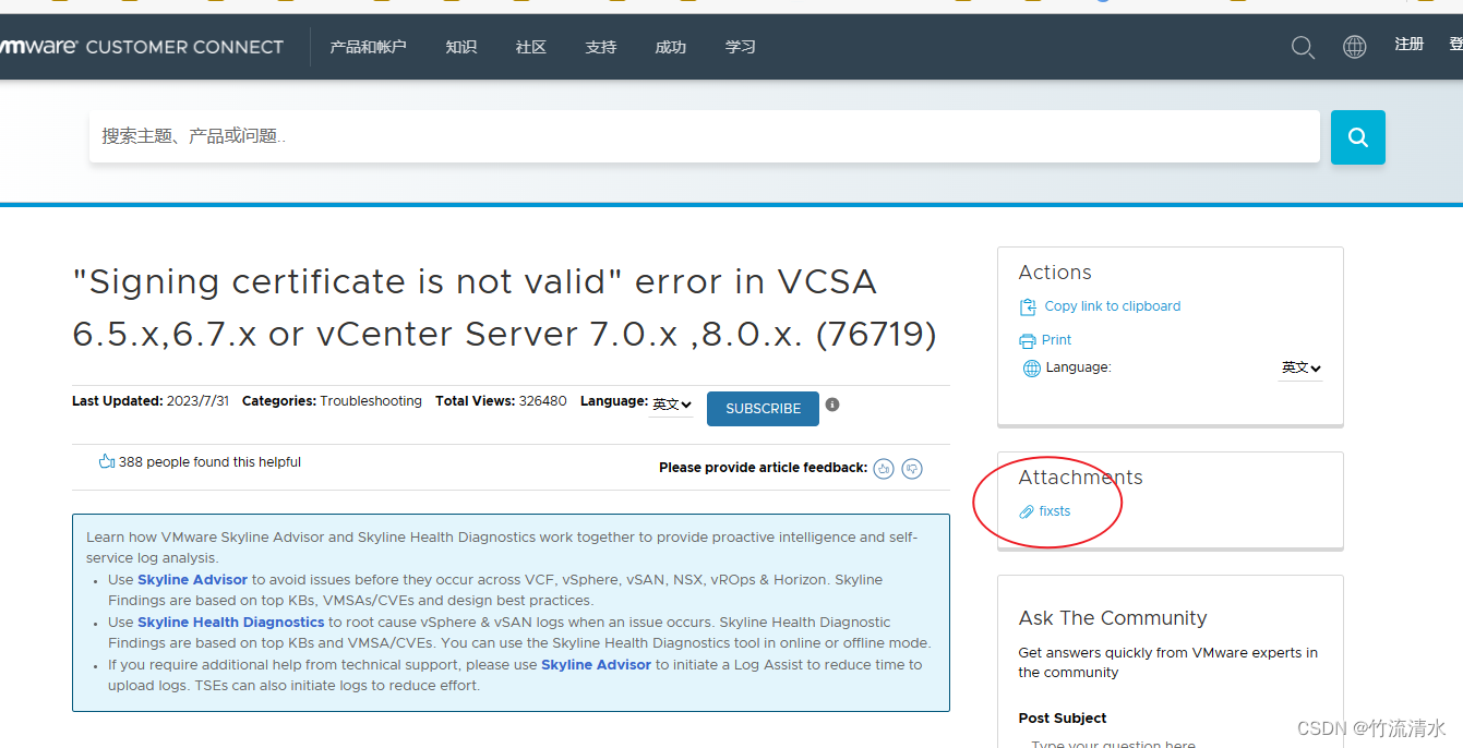 https://kb.vmware.com/s/article/76719) 下载修复脚本 fixsts.sh