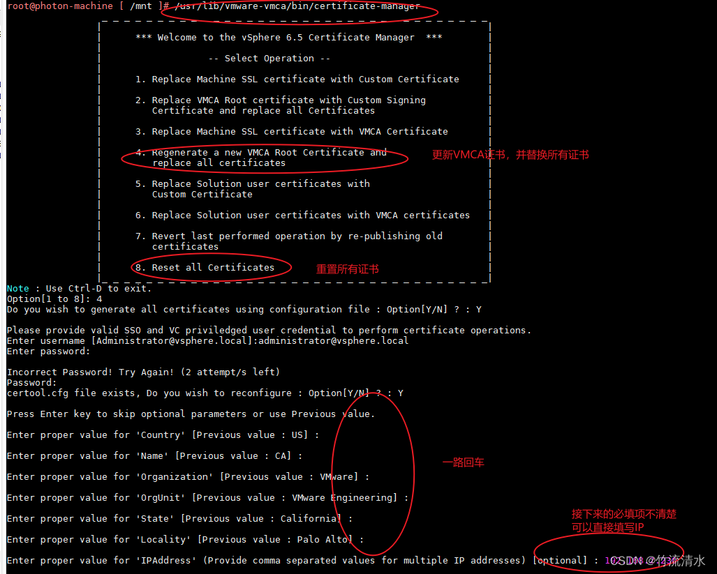 使用证书管理工具(certificate-manager)选择8来全部更新证书 这里需要SSO账户和密码