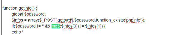 解密后发现它定义了一个函数,这个函数就是获取到密码,然后通过md5加密,与$password进行对比, $password 不为空,且相等才允许登陆。