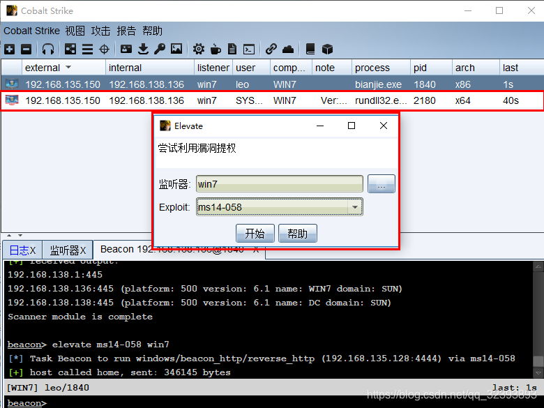 边界机器:win7 外网:192.168.135.150 内网:192.168.138.136