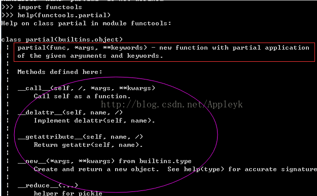 (2)我们都听过偏将军吧,在三国时代的官制中,系将军的辅佐,与裨将军两者都为杂号将军;今天我们要讲的偏函数,其实是函数的辅佐,什么意思呢,我们借助Python的help帮助函数,看一下: