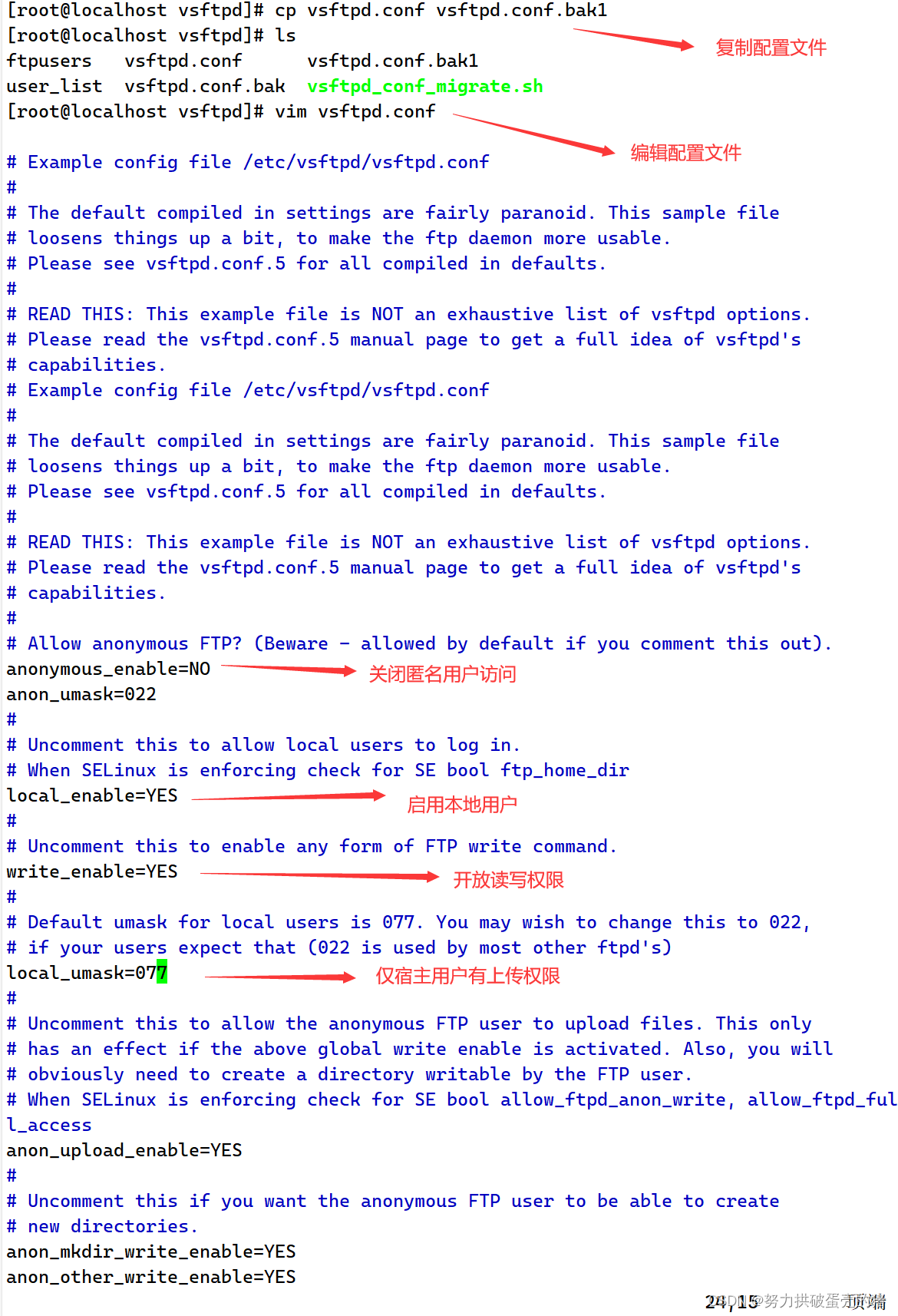 vim /etc/vsftpd/vsftpd.conf #修改配置文件
