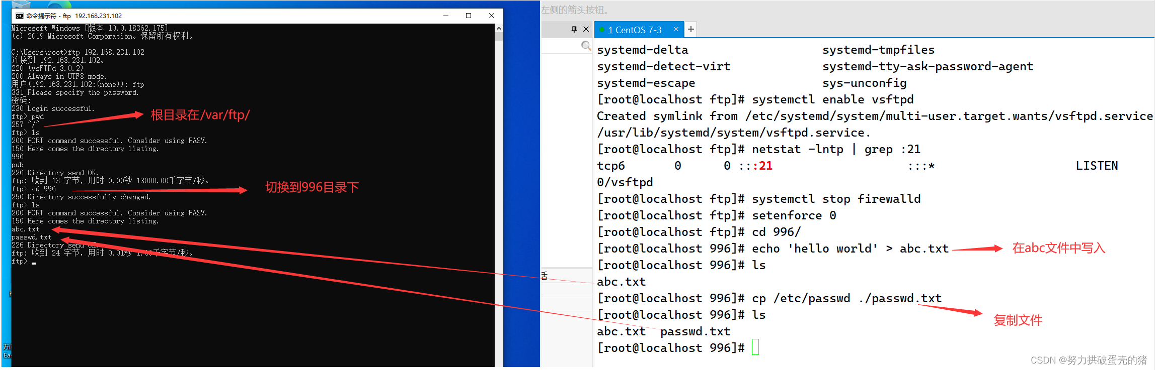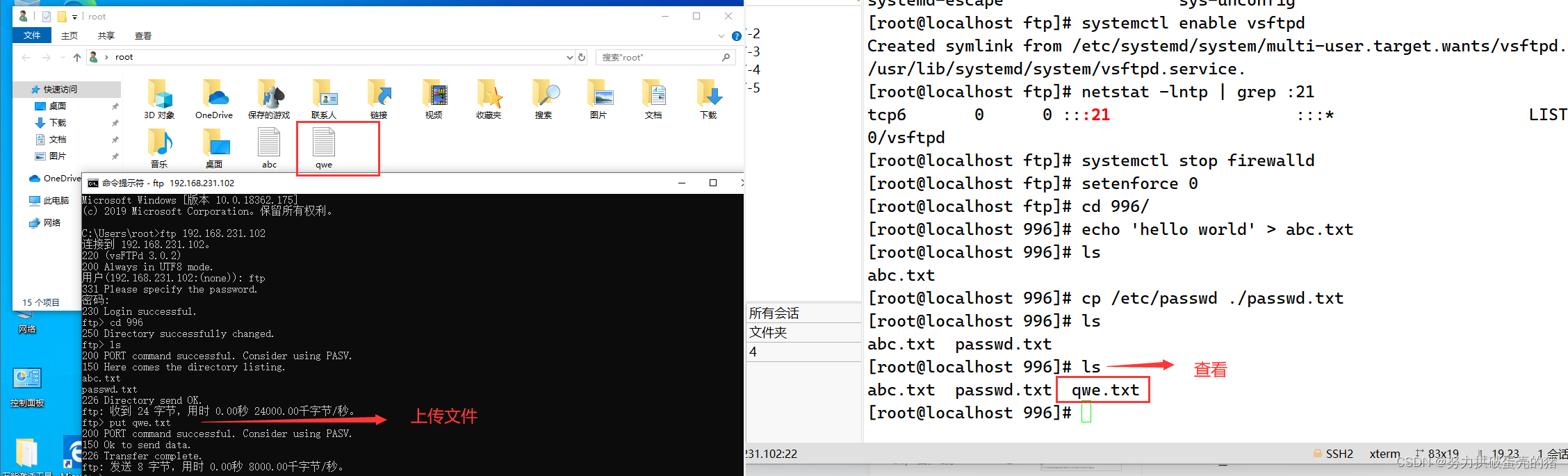 5. 在虚拟机中写入文件,查看Windows系统中是否一致,Windows系统的根目录是虚拟机的/var/ftp/目录