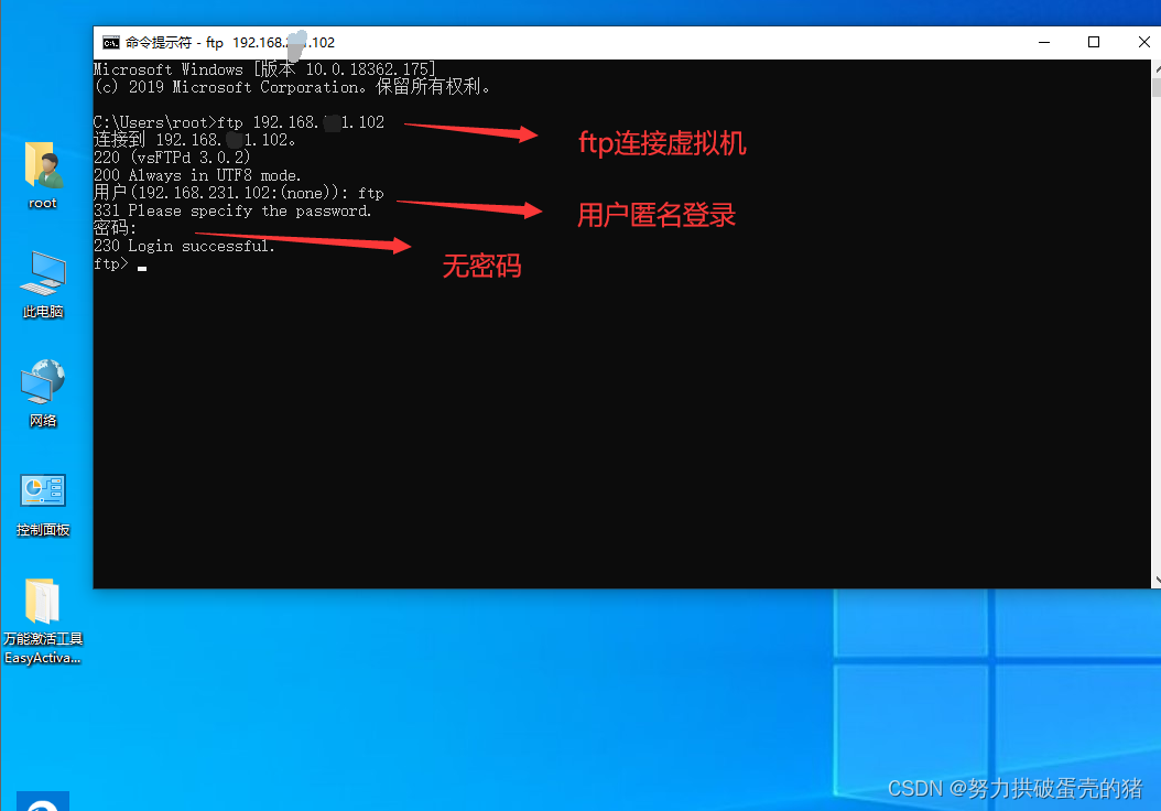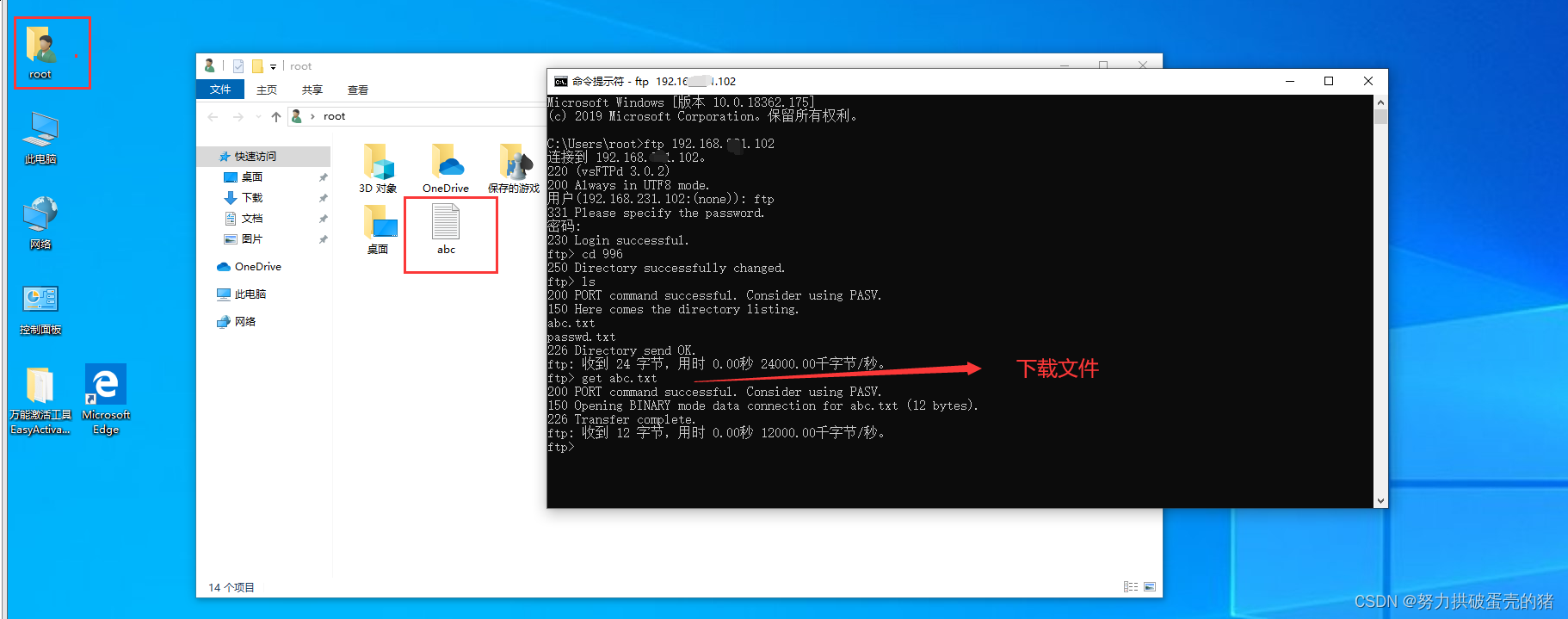 ftp> get 文件名 #下载文件到当前Windows本地目录