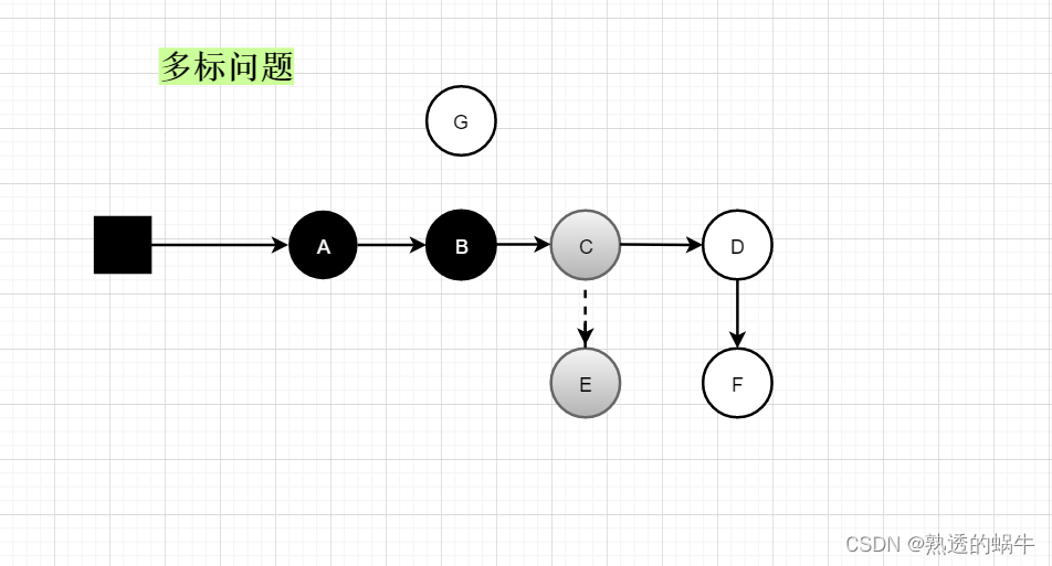 假如GC线程已经扫描到了E对象,此时E对象为灰色,这个时候用户线程将C的引用E断开,那么GC就会认为E对象是可达对象,而不会对E进行垃圾回收,但实际上E是个垃圾对象,这个时候就会产生多标问题,多标问题其实还可以接受,E作为浮动垃圾,那么等到下次垃圾回收的时候回收掉。
