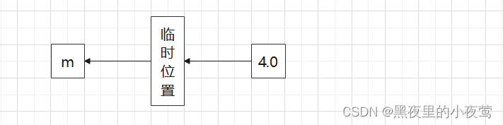 在第一条语句中,值4.0被复制到一个临时位置,然后被复制给m。在第二条语句中,值5.0被复制到一个临时位置,然后被传递给cout。