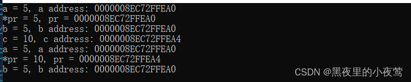 cout << "*pr = " << *pr << ", pr = " << pr << endl;