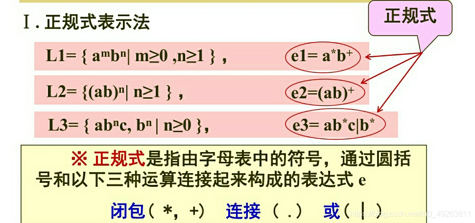 注意:凡是能由上述方法的一种表示的语言,一定是正规语言,反之一定不是正规语言。