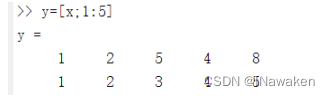 >> y=[x;1:5];%矩阵