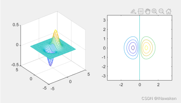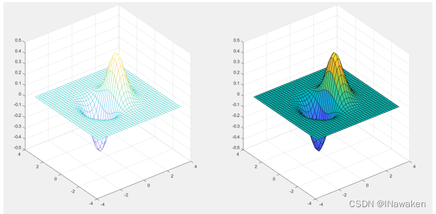 >> subplot(1,2,1); mesh(x,y,z); %有实色边颜色,无面颜色