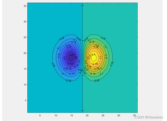 >> contour(Z,[-.45:.05:.45]);%指定高度处绘制等高线