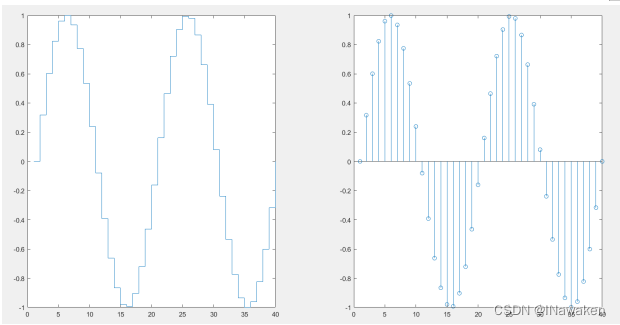 >> subplot(1,2,1); stairs(y);