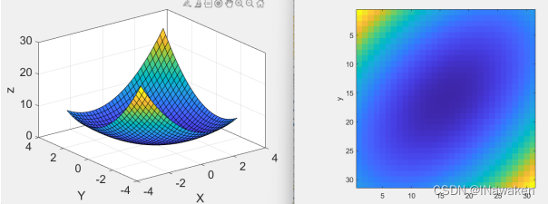 [X,Y] = meshgrid(x,y) 基于向量 x 和 y 中包含的坐标返回二维网格坐标。X 是一个矩阵,每一行是 x 的一个副本;Y 也是一个矩阵,每一列是 y 的一个副本。坐标 X 和 Y 表示的网格有 length(y) 个行和 length(x) 个列。