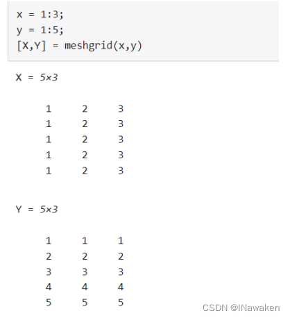 >>[X,Y]=meshgrid(x,y);