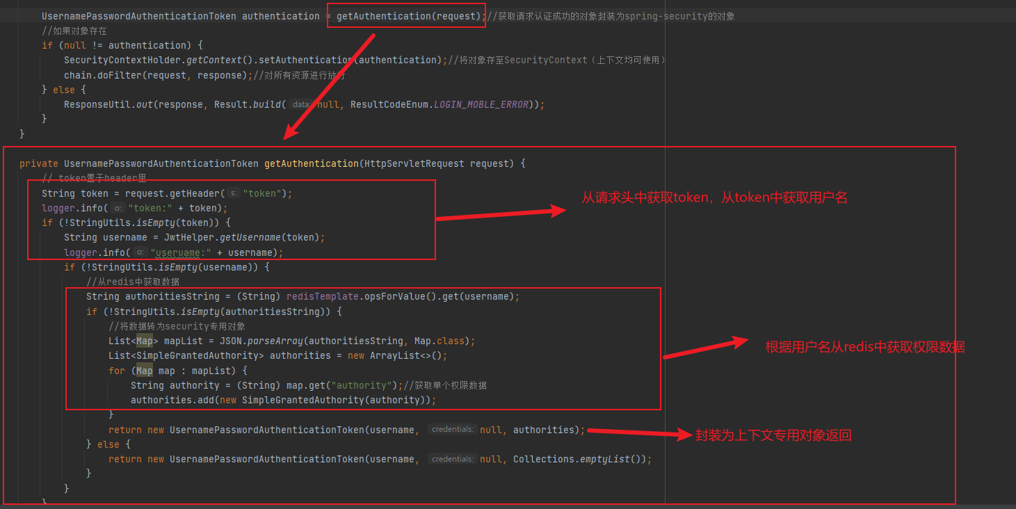 UsernamePasswordAuthenticationToken authentication = getAuthentication(request);//获取请求的对象封装为spring-security的对象