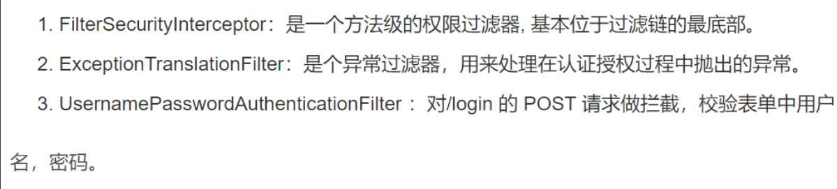 说明:Spring Security的核心逻辑全在这一套过滤器中,过滤器里会调用各种组件完成功能,掌握了这些过滤器和组件你就掌握了Spring Security!这个框架的使用方式就是对这些过滤器和组件进行扩展。