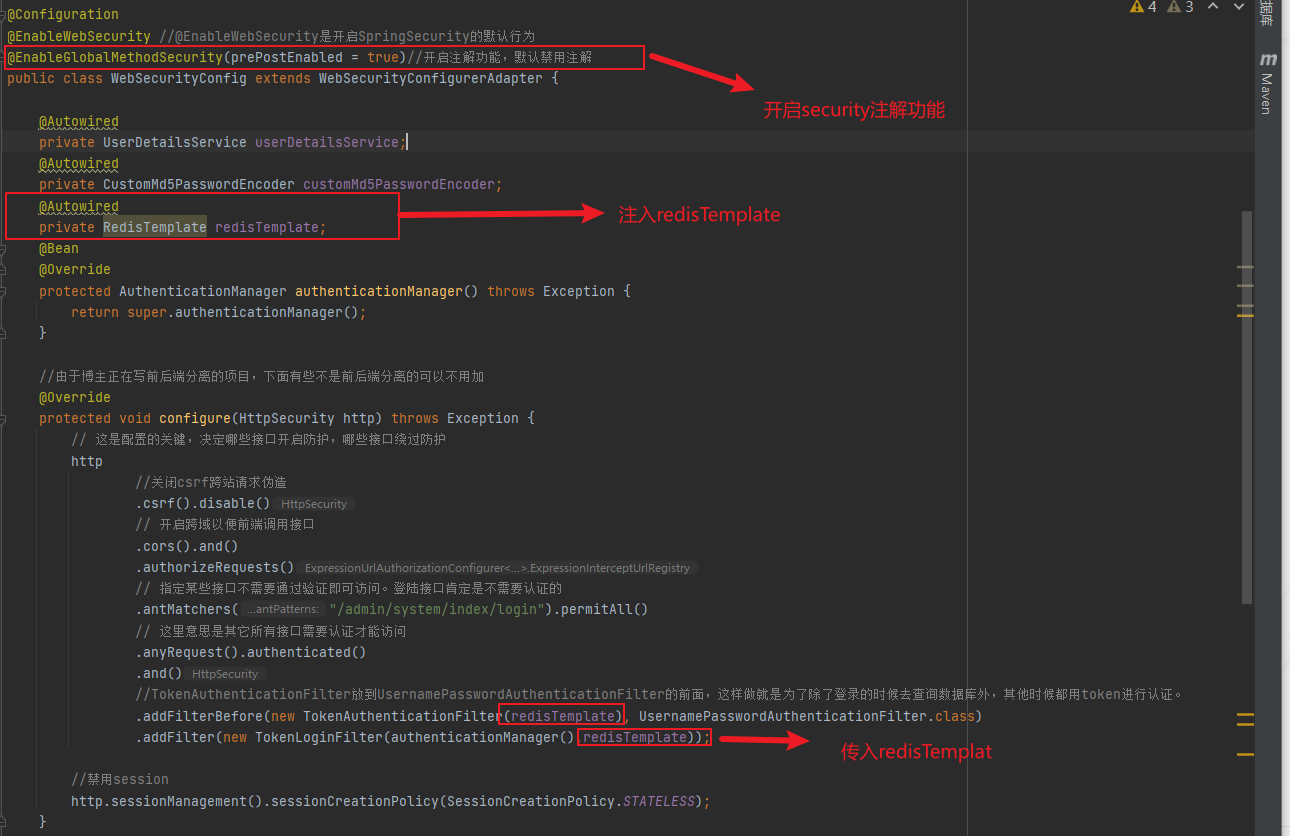 @EnableWebSecurity //@EnableWebSecurity是开启SpringSecurity的默认行为