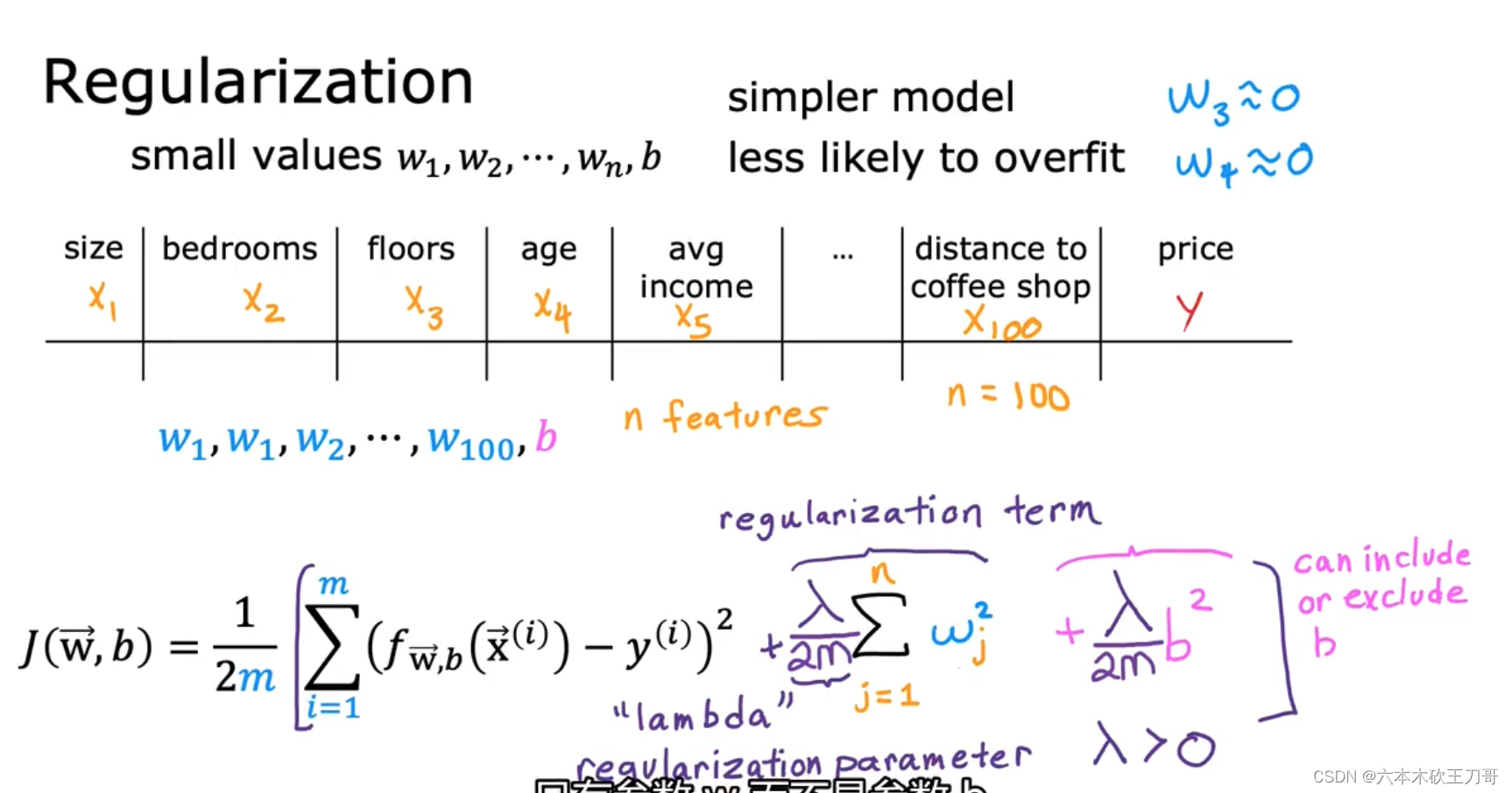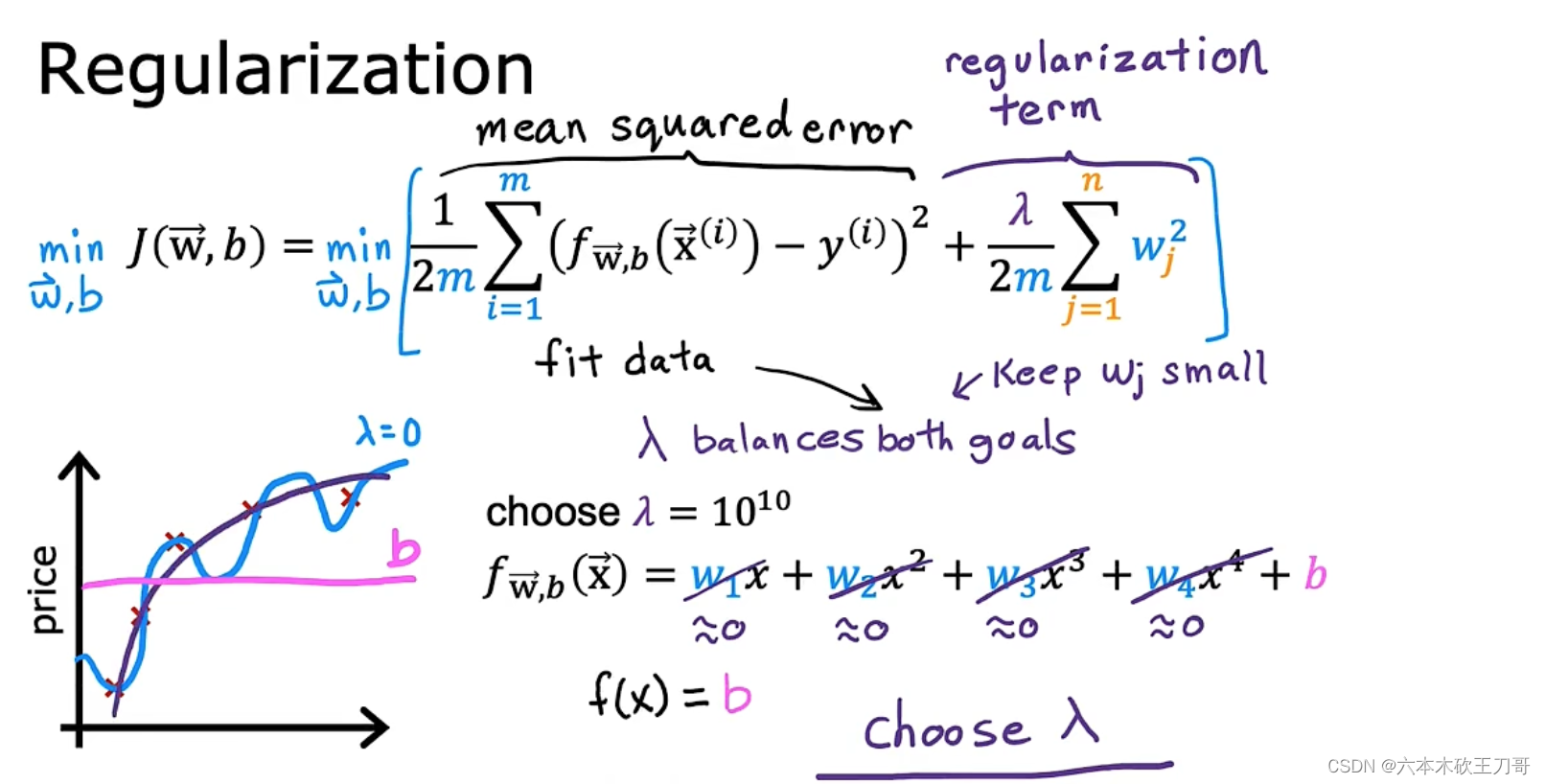 统一惩罚能得到简单结果是因为,高阶项受到惩罚的效果会更强,反映在图像上就是使其影响变弱,λ 为正则化参数,有时候也会把b的惩罚加进来,但是大部分情况下只有w。