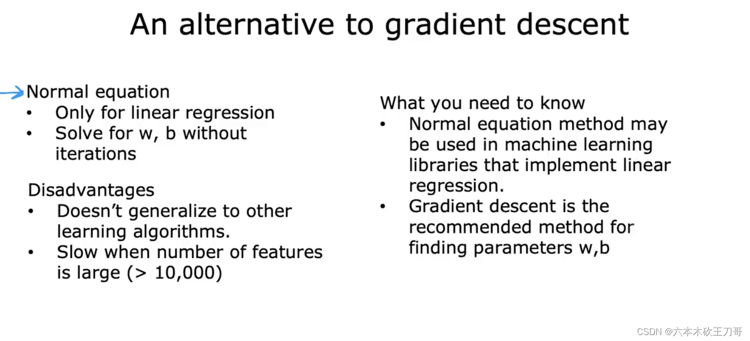 另一种方法是normal equation,但是用的不多。