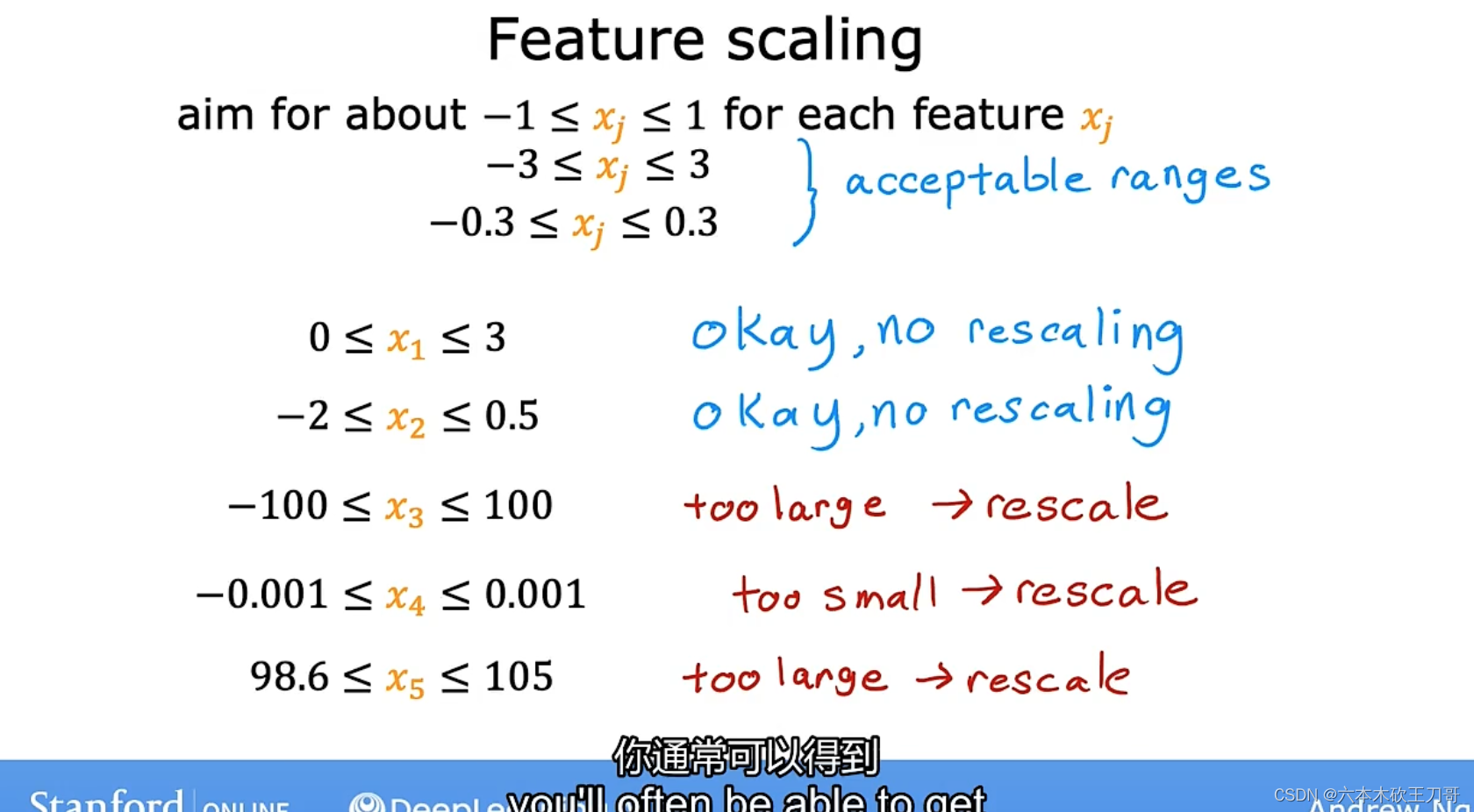 解决的方法是尝试将所有特征的尺度都尽量缩放到-1 到 1 之间。