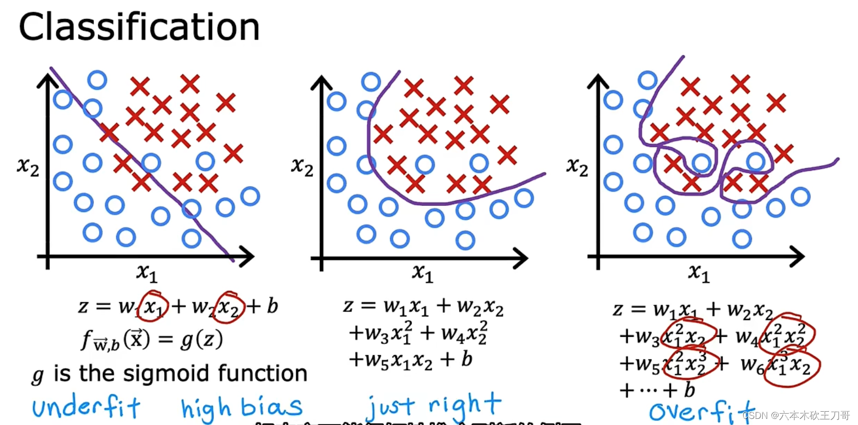 分类问题也存在过拟合和欠拟合问题: