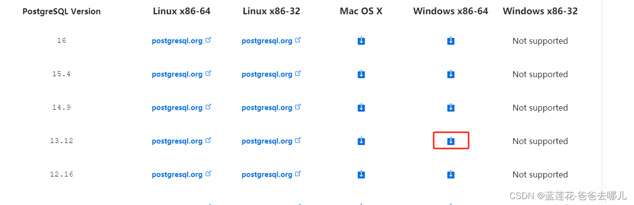 我选择版本13 x86-64(注:本人的Navicat版本比较低,安装版本16连接不上)