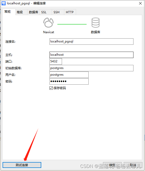 配置完,点击左下角【测试连接】,如果正确就会提示连接成功。点击确定。