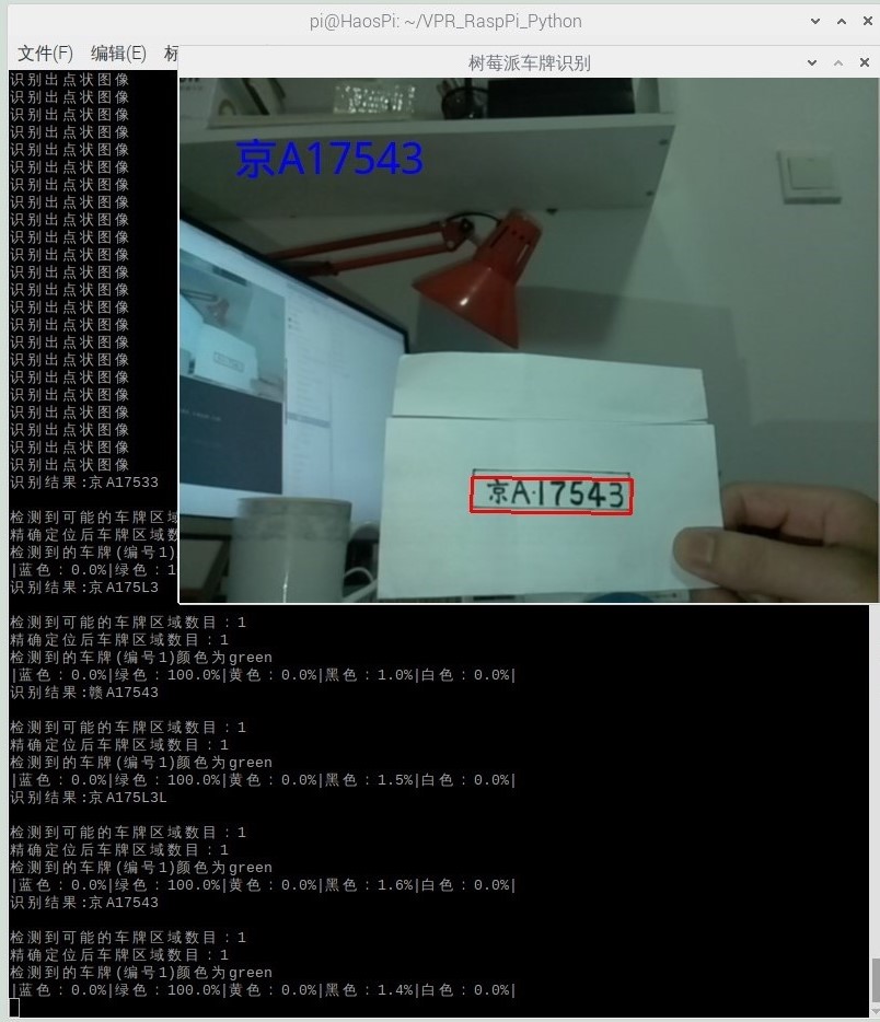 本文环境:python2.7(感觉3问题也不大,可以自己改一改);opencv 3.4.1;树莓派-4;识别距离最少40厘米,直接手画了车牌进行演示,很low,估计换成标准车牌图像测试会提高准确率,而且直接使用了文1中的SVM训练好后模型数据,应该这块改进也能提高识别概率,最终表现是,中文字符的识别率较差,英文与数字较好,数字可以达到90%以上。