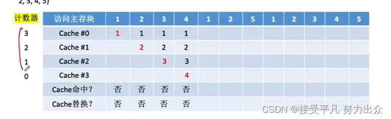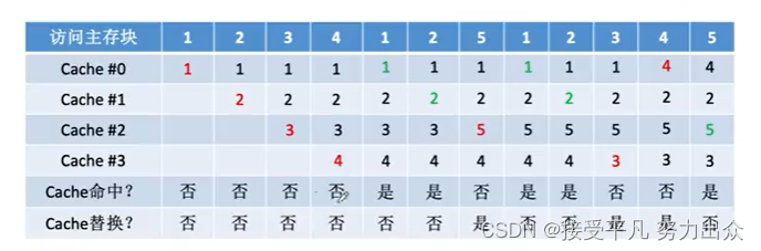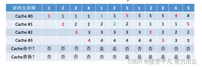 设总共有4个Cache快,初始整个Cache为空,采用全相联映射,依次访问主存块{1,2,3,4,1,2,5,1,2,3,4,5}