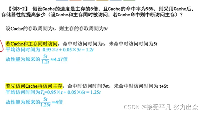 或 t=Htc+(1-H)tm:同时访问Cache和主存,若Cache命中则立即停止访问主存