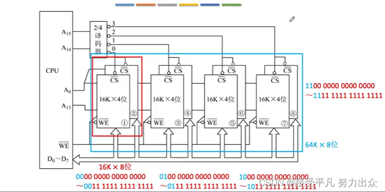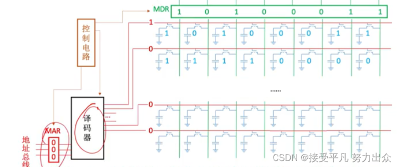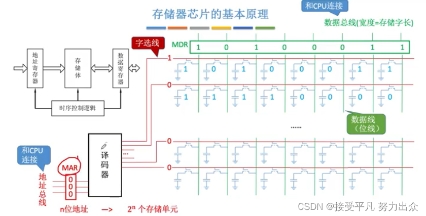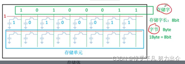 然后我们将多个存储元连在一起,我们就一次性可以读出或写入多个二进制数据;我们称为存储单元.将多个存储单元称为存储体;