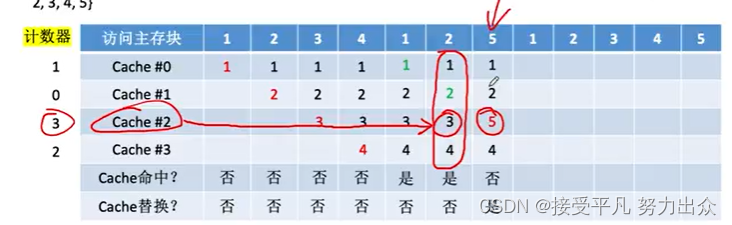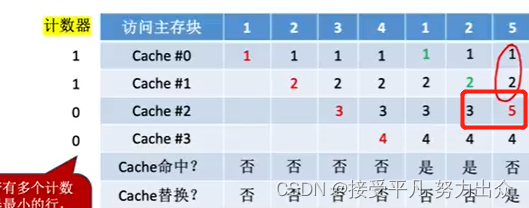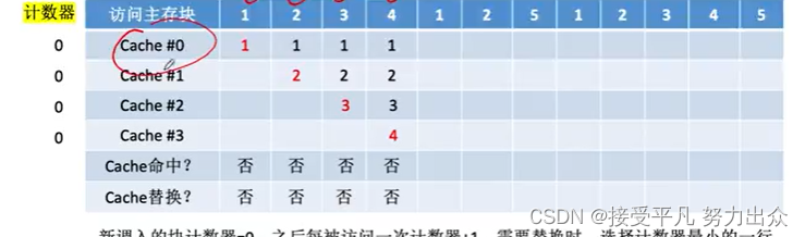 最不经常使用算法--为每一个Cache块设置一个"计数器:"用于记录每个Cache块被访问过几次,当Cache满后替换"计数器"最小的