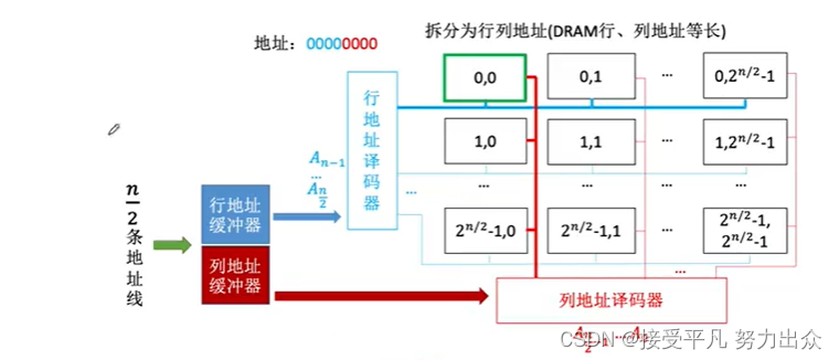 为了让地址线变的更少和更简单,我们采用DRAM的地址线复用技术,