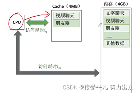 但是主存的速度还是不够快,我们引入了Cache,把经常使用的,例如:微信里的视频功能,存入到Cache中,一旦使用直接被CPU访问,加快速度.这就是Cache的主要作用,主要是缓解CPU和主存之间的速度矛盾