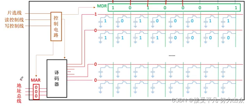 由于我们使用电信号传入,难免有不稳定的时候,当MAR里面的电信号稳定之前,控制电路是不会让其进入的,只有稳定时候才会打开译码器的开关,让译码器来翻译这个地址;当数据输出的时候,只有当MDR稳定的时候才会执行.