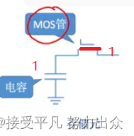 写入:再导线的右端加一个电压,用二进制1表示,然后MOS管接通,1进来,电容就会存在电压差,接下来断开MOS管,这样电容里的电荷就跑不出去了.