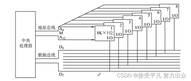 常见的描述:8K*8位,即2^13*8bit;8K*1位,即2^13*1bit;64K*16位,即2^16*16bit