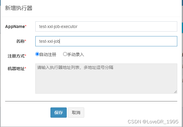 1. 新增执行器,进入执行器管理页面新增执行器,AppnName填写yaml文件中配置的test-xxl-job-executor