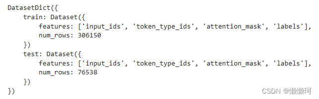 使用map方法对数据集进行处理,后续操作不需要用到最初的数据,因此通过remove_columns将多余的字段删除