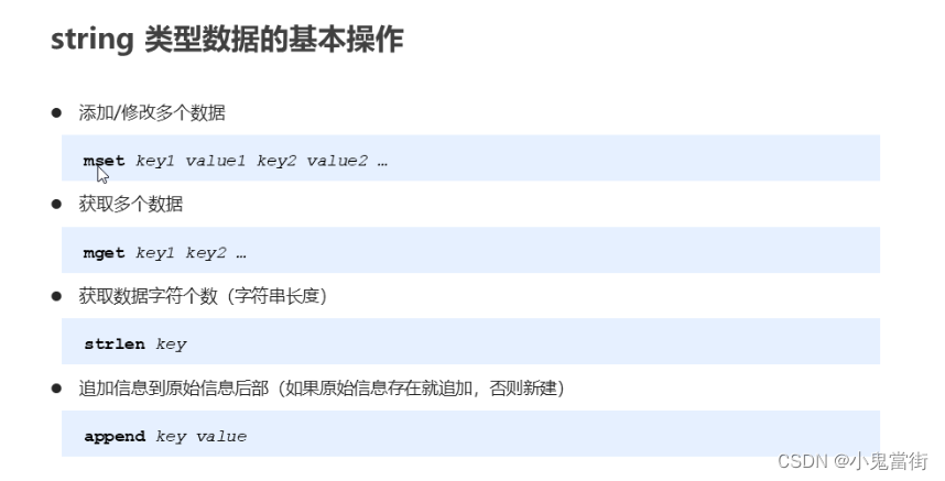 数据类型指的是存储的数据的类型,也就是value部分的类型,key部分永远都是字符串