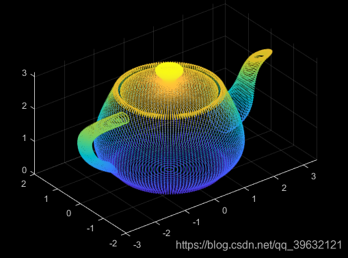 上图即为加载显示的茶壶点云,为matlab的自带数据。