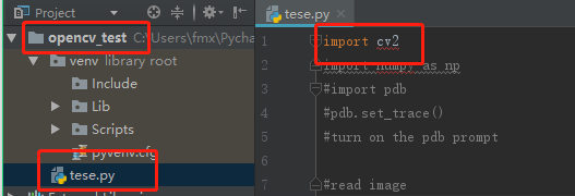 可以看到import cv2有红线,此时需要在工程中导入cv2模块,若不能导入cv2则导入opencv-python