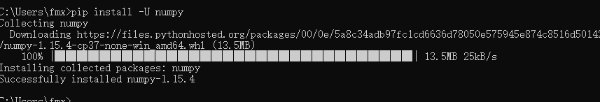 解决方法:退出python命令行:exit();执行pip install -U numpy