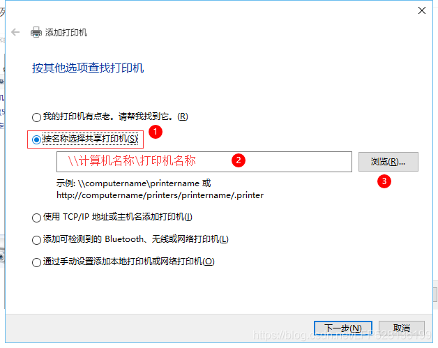 2、在其他计算机上添加目标打印机