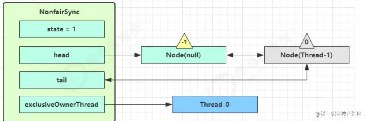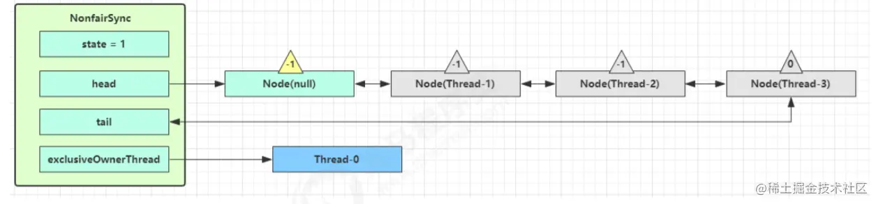 - Thread-1 再次进入 acquireQueued 流程,获取锁失败,重新进入 park 阻塞