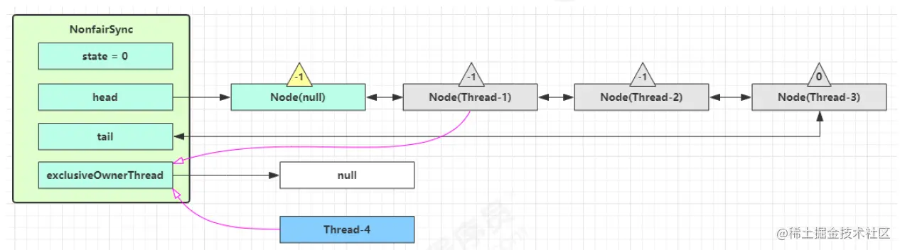 - Thread-4 被设置为 exclusiveOwnerThread,state = 1
