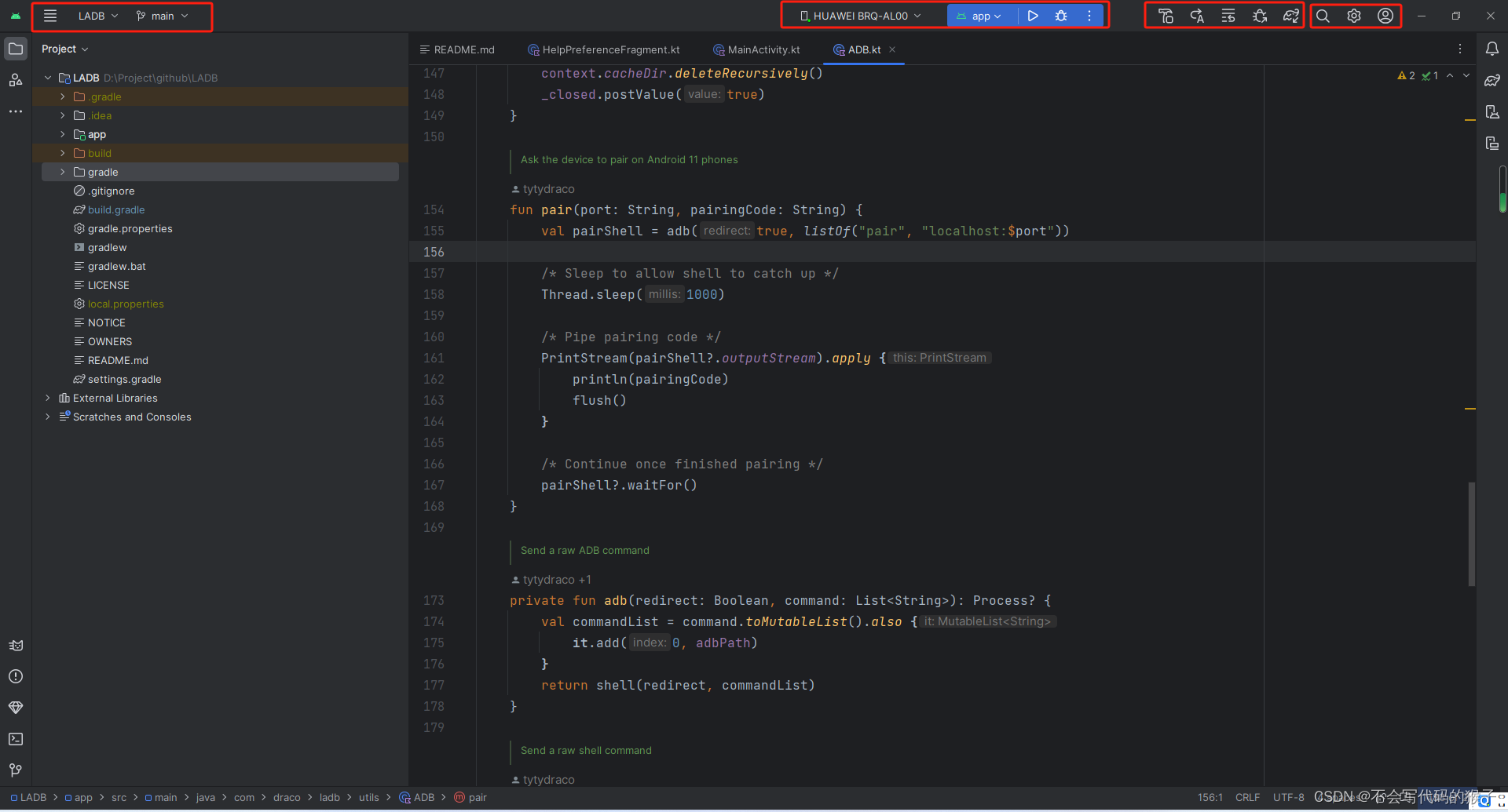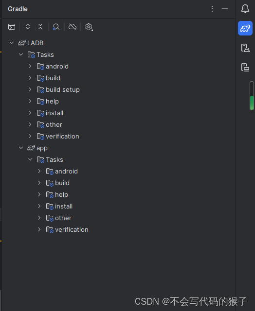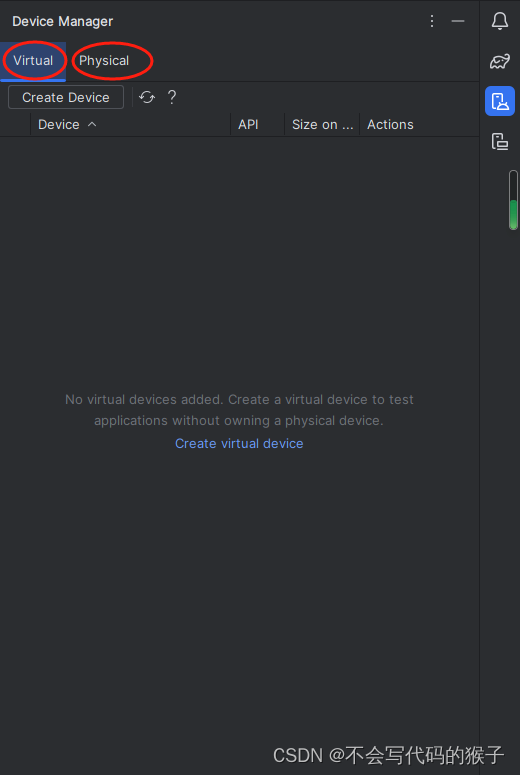 右侧还是原来gradle构建的选项,device控制(虚拟机和实体机),